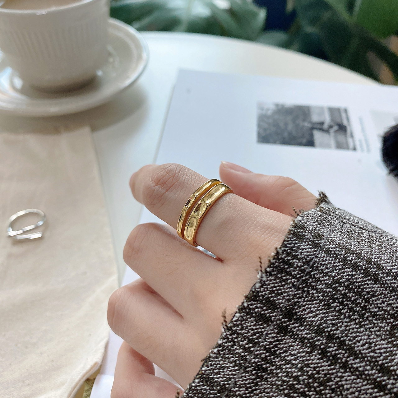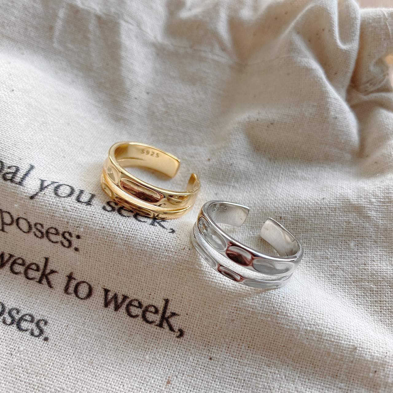 Anillo regulable fabricado en plata rodiada o bañado en oro.