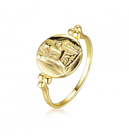 Anillo hecho en plata 925 y bañado en oro con motivo de moneda.