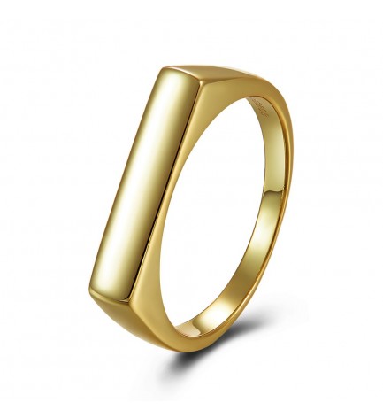 Anillo tipo sello con forma rectángular hecho en plata 925 y bañado en oro.