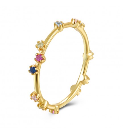 Anillo hecho en plata 925 y bañado en oro con circonitas multicolor salpicadas.