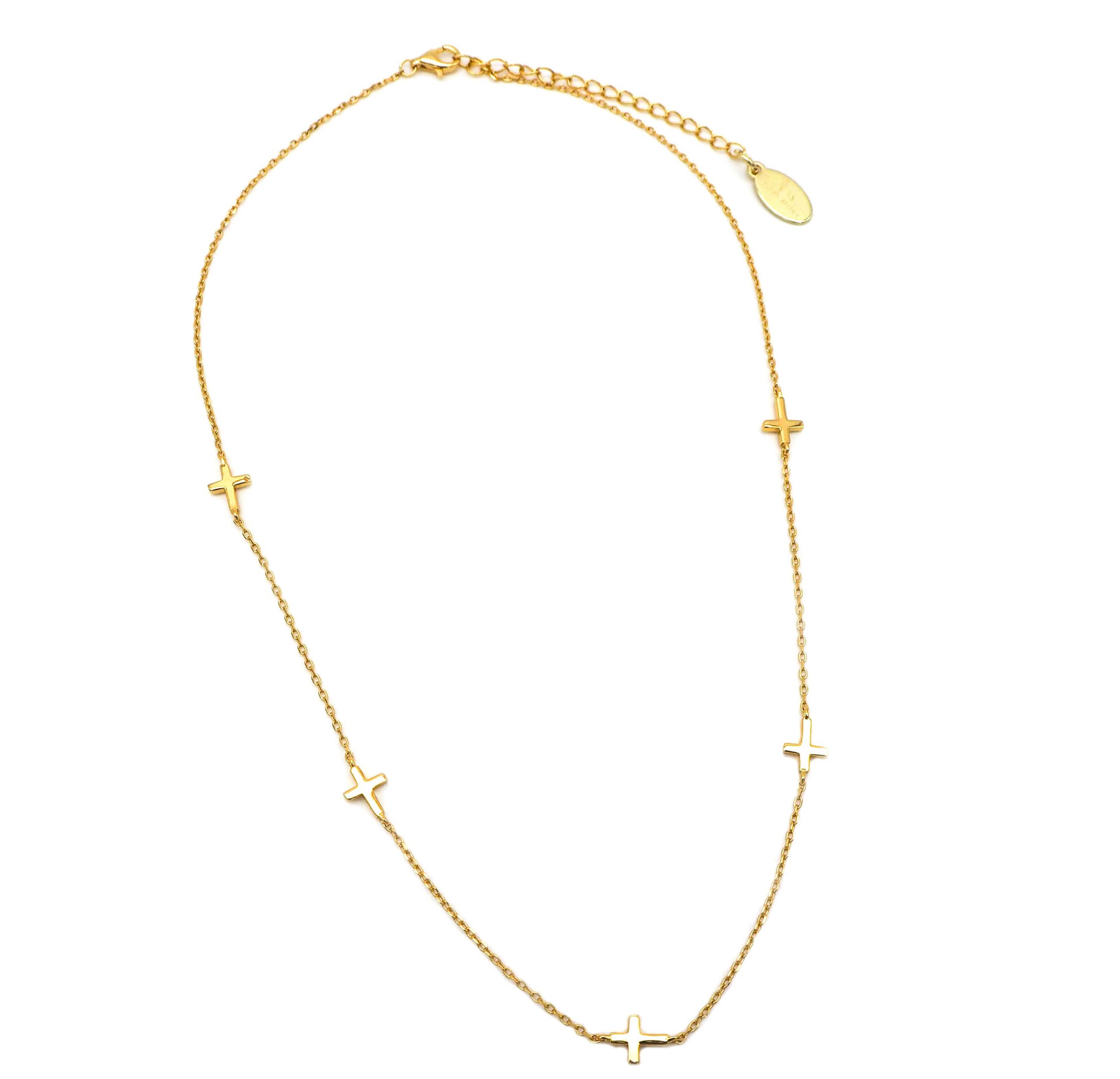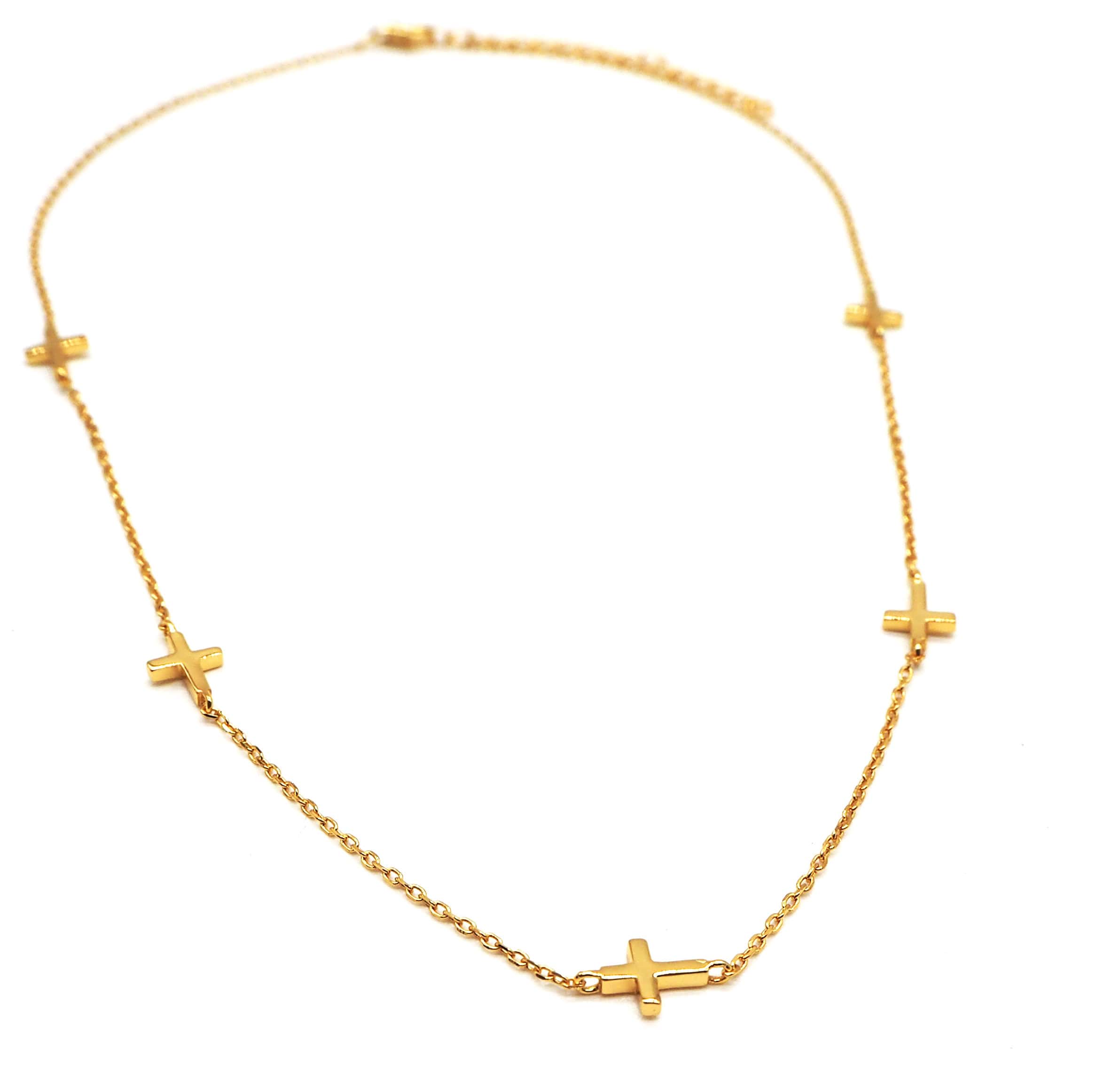 • Collar en plata 925 bañado en oro con cinco cruces.