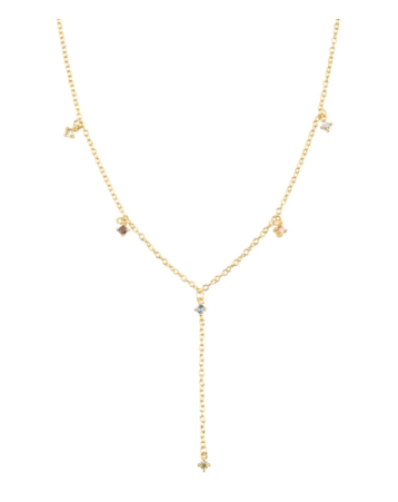 Collar fabricado en plata y bañado en oro con circonitas multicolor.