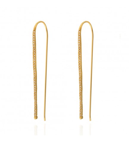 Pendientes largos con tira de circonitas hechos en plata 925 y bañados en oro.