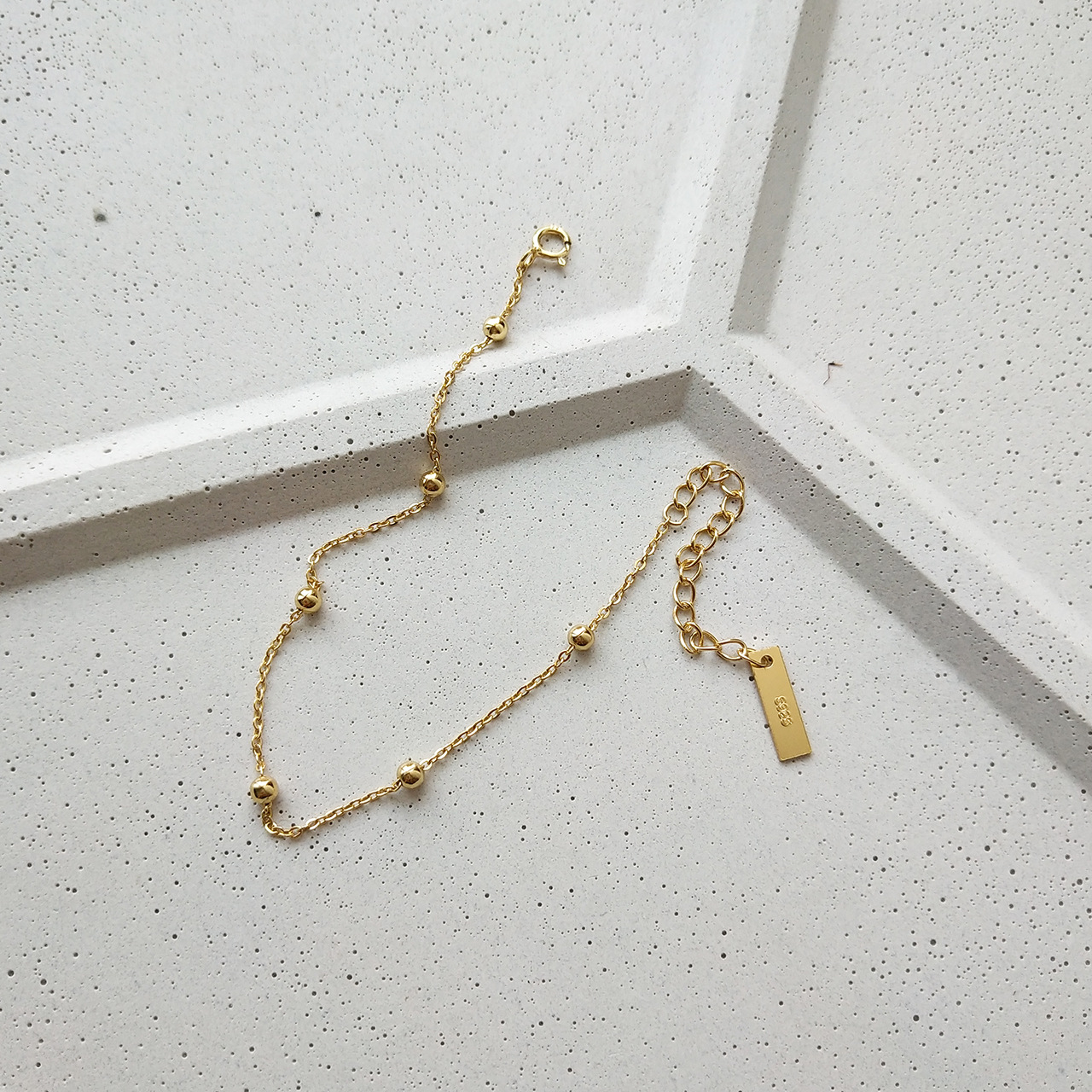 Pulsera de cadena con bolitas fabricada en plata y bañada en oro.